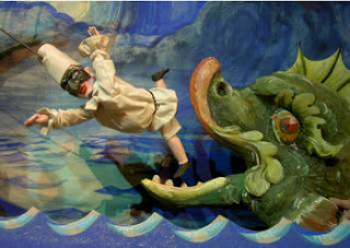 All in all, though, the production was a brilliant success on every level–and most especially the musical. The musicians and singers of Magnificat were uniformly excellent, and Caccini’s music was simply gorgeous. I have to mention by name soprano Catherine Webster (Alcina), mezzo-soprano Jennifer Paulino (Sirena, Damigelle), alto countertenor José Lemos (Melissa/Atlante and other characters), and bass Hugh Davies (Nettuno)–their contributions in particular were superb. But every member of Magnificat and the Carter Family Marionettes should congratulate themselves on a triumph.